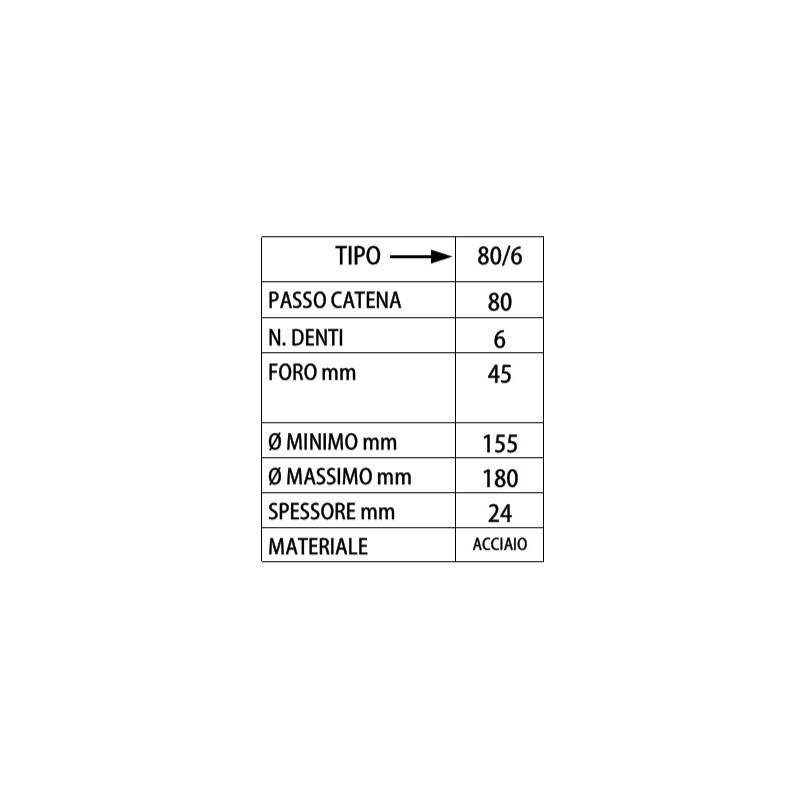 PIGNONE DI TRAINO 6 DENTI d. EST mm 180 FORO d. 40 PER CATENA 80•12