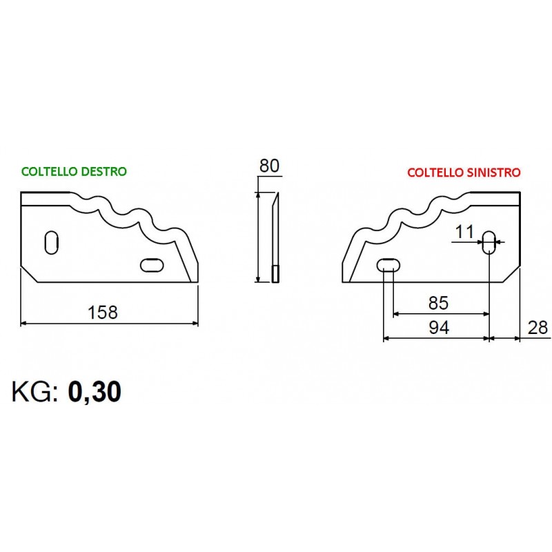 COLTELLO SETTORE DENTATO AD. GILIOLI mm 158x80 SINISTRO