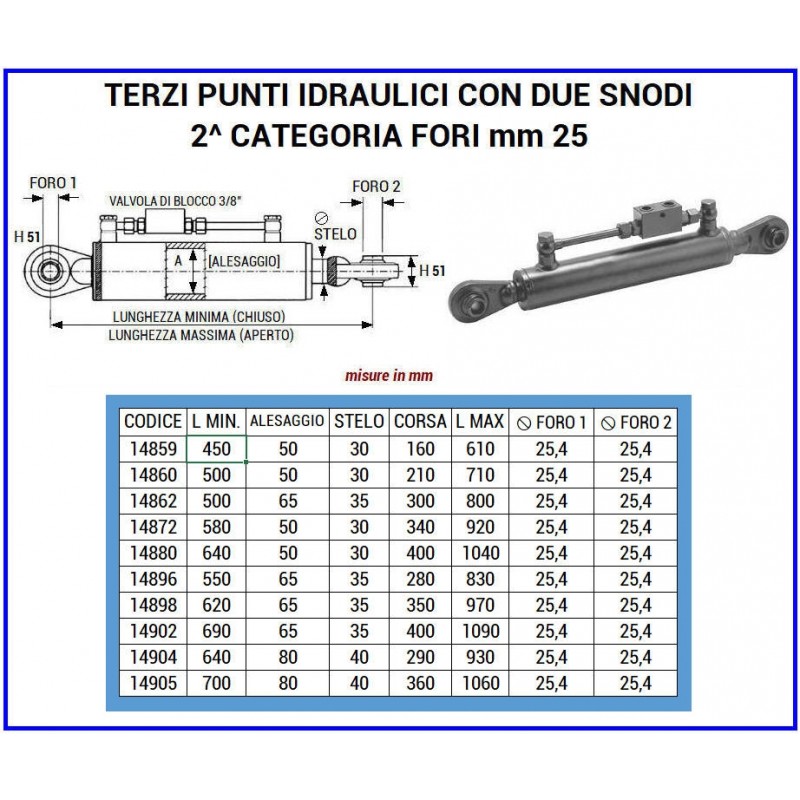 TERZO PUNTO IDRAULICO 40x80x700 ~ SNODI CAT. 2ª
